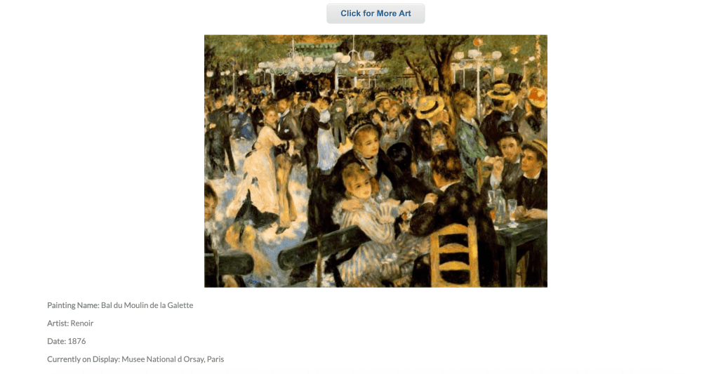 - Allow students to explore art, generating pieces until they find one they like. The student should create a report that records important details and fun facts about the artwork.